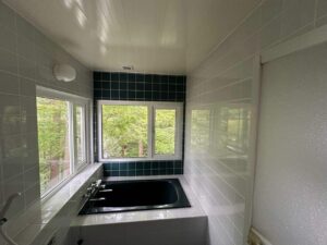 タイルへの密着力が高いカチオン系のセメントを下塗りしてからデコリエを塗ります。 |